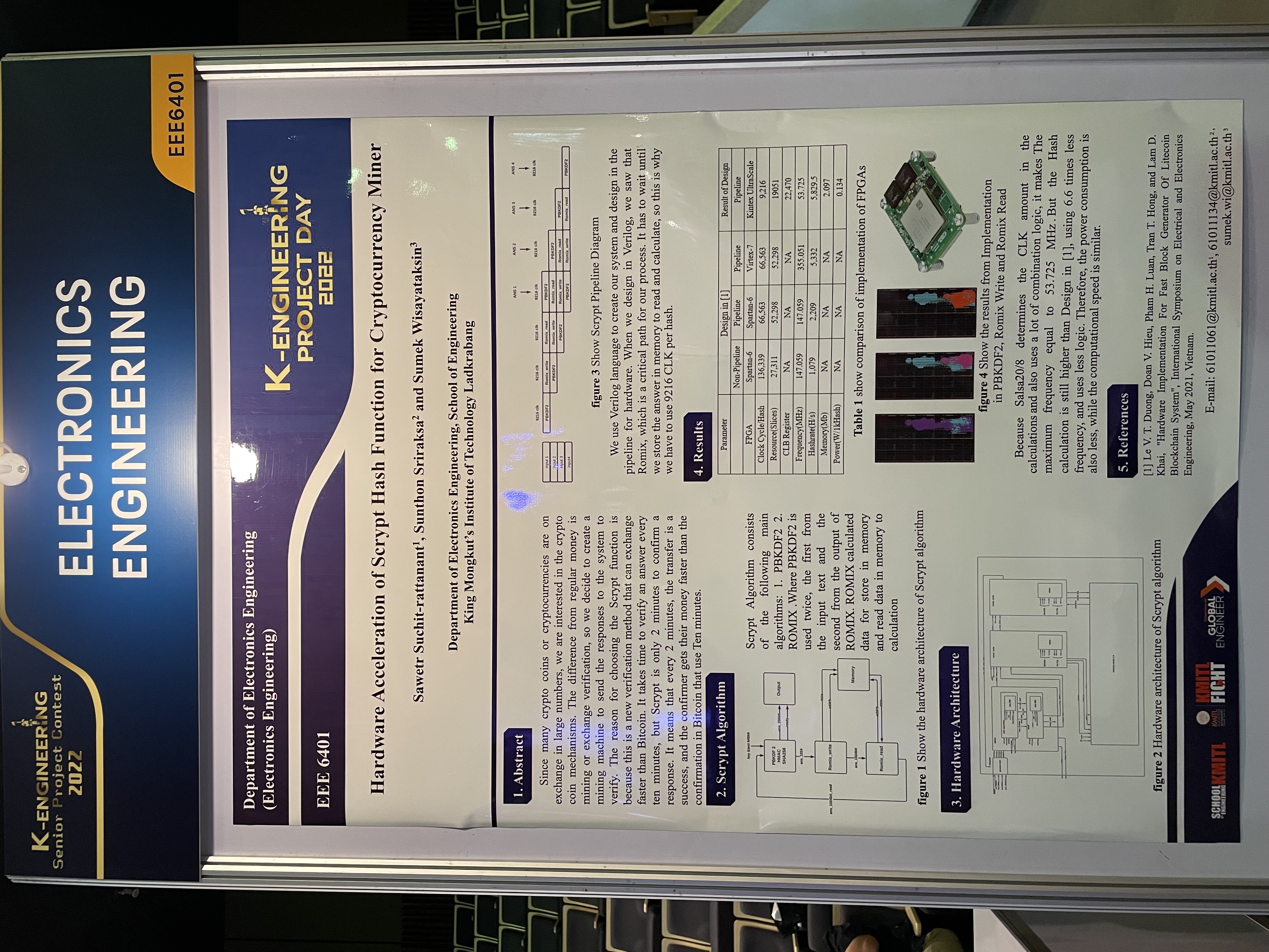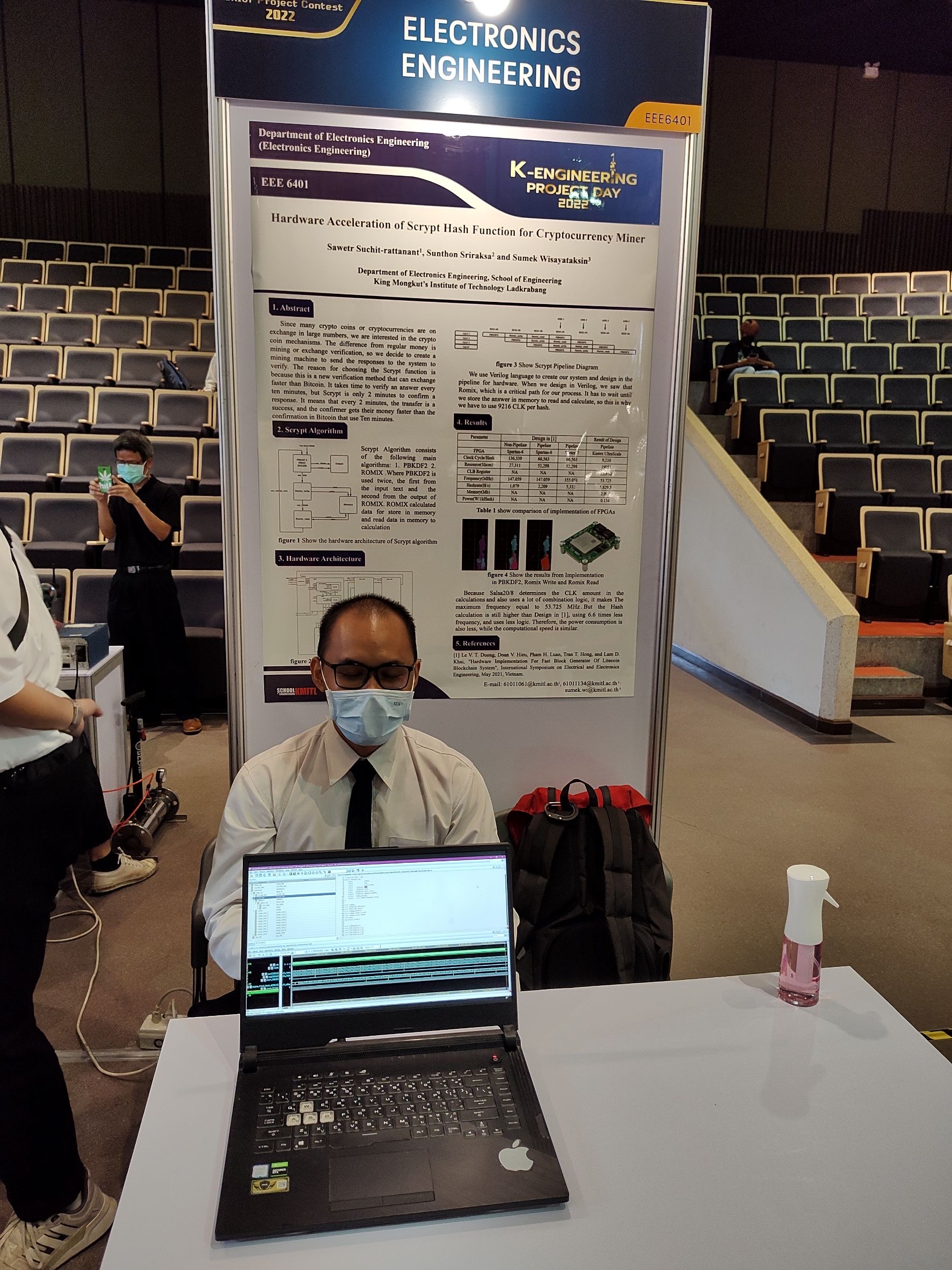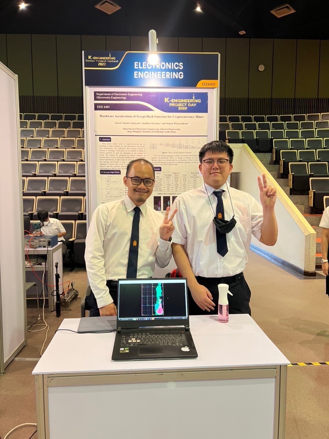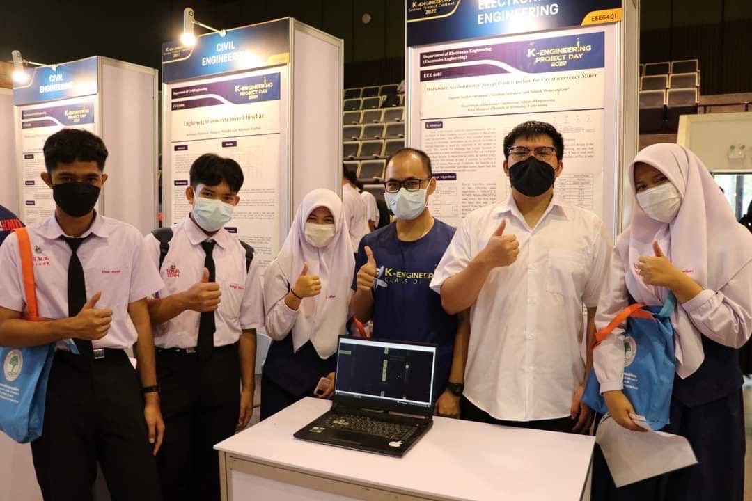 ภาควิชาวิศวกรรมอิเล็กทรอนิกส์เข้าร่วมงานโปรเจคเดย์ 2022 ณ.หอประชุมใหญ่ เมื่อวันที่ 26-27 พฤษภาคม 2565 โดยโปรเจคที่ได้รับการคัดเลือกเข้าจัดแสดงมี 2 หัวข้อคือ เครื่องวัดแรงกดฝ่าเท้าสำหรับการวิเคราะห์หัวเข่า ของนศ.ชั้นปีที่ 4 นายกษิดิ์เดช กอวิวัฒนาการ และนายบุณยวีร์ ศิริมหา โดยมีอาจารย์ที่ปรึกษาคือ ผศ.ดร.สุรเดช ตรีไตรลักษณะ โปรเจคที่สองเป็นวงจรเร่งประมวลผลการขุดเหรียญคริปโตบน FPGA โดย นายสุนทร ศรีรักษา และ นายเศวตร สุจิตรัตนันท์ โดยมีอาจารย์ที่ปรึกษาคือ ผศ.ดร.สุเมฆ วิศยทักษิณ นอกจากนี้ยังมีผลงานสหกิจศึกษาของนางสาวขนิษฐา ฟองสูงเนิน จากระบบตรวจวัดอุณหภูมิผ่านเครือข่ายสื่อสาร RS-485 โดยมีอาจารย์นิเทศคือ ผศ.ดร.รังสรรค์ เมืองเหลือ จัดแสดงให้กับผู้เข้าชมจากภายนอกเช่นนักเรียนนักศึกษาและบริษัทต่าง ๆ ทั้งนี้ภาควิชาของแสดงความยินดีกับ นายนิติพัฒน์ เจริญพันธ์ ได้รับรางวัลนักศึกษาผู้สร้างชื่อเสียงและทำ คุณประโยชน์ให้แก่สถาบันจากท่านคณบดี รศ.ดร.สมยศ เกียรติวนิชวิไล